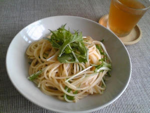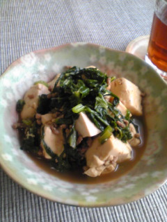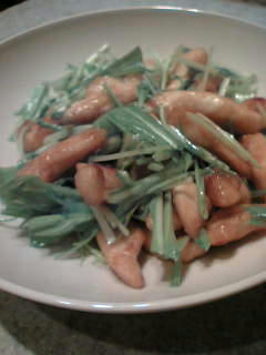 で味付けをして、火を止めてから水菜を投入しざっくり混ぜる。