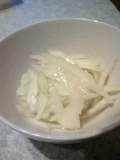チーズ以外の具を炒める。(顆粒コンソメ小さじ1で味付け)